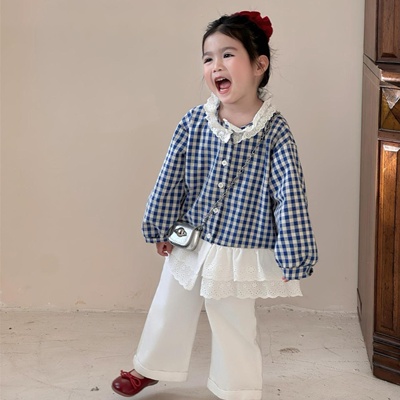 - 비다이어리.블루체크레이스블라우스