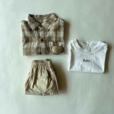 - 앙뜨제이.브라운체크곰돌이3종상하세트