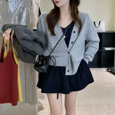 - on.[CD586]투웨이가디건배색나시세트