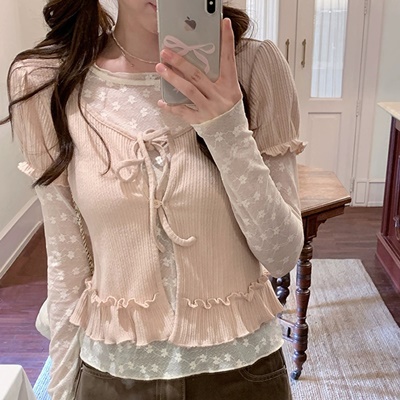 on.[CD627]프릴반팔가디건시스루티셔츠세트
