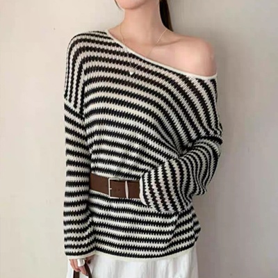 on.[NT664]스트라이프루즈핏벨트니트