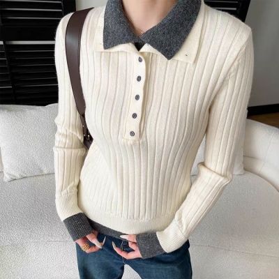 on.[NT713]배색레이어드골지니트